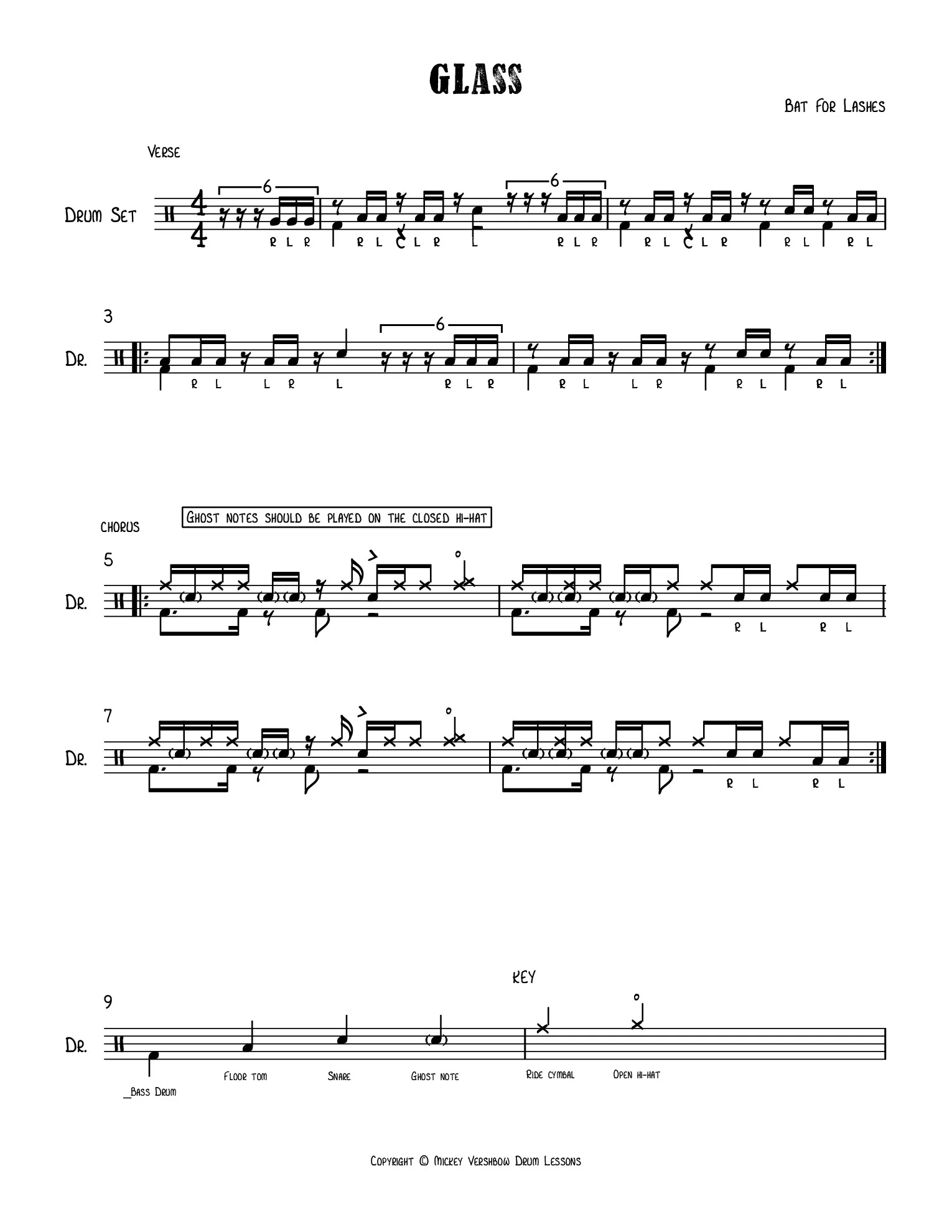 If you're an intermediate to advanced player, this song is a great way to explore more complex grooves in the context of a song. While the live version features mostly programmed drums, this transcription is based on the amazing live version performed by Sarah Jones. See below for the PDF download, as well as video tutorials and footage of Sarah Jones performing live with Bat for Lashes!